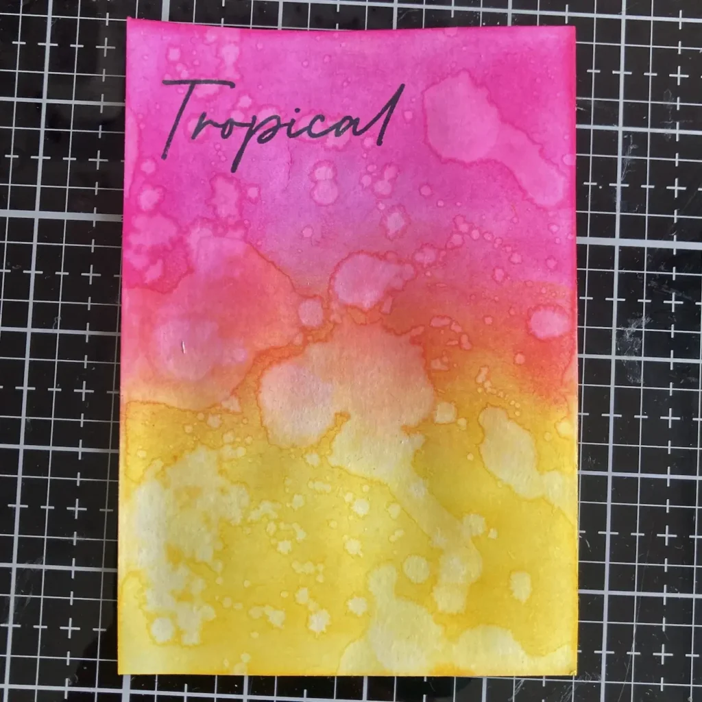 Tip: Make the background your own! Keep colours soft for a gentle look or go bold for a vibrant, eye-catching effect. Adjust blends and splatters to match your style and the mood of your tropical birthday card.