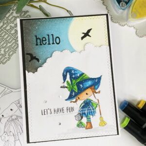Congratulations, you have successfully assembled your Halloween card! It’s now ready to spread the joy of the season to your friends and family. The combination of the moonlit background, enchanting digital stamp, and personal touches creates a unique and captivating card that’s sure to impress.