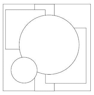 Next, place the long strip with the yellow paper in the centre of the card as indicated on the sketch. Following this, place the square in the top left corner and the rectangle in the bottom right corner as shown in the sketch.