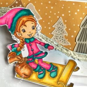 For this Christmas slimline card, I also got to work with one of their digital stamps. The name of this stamp is “Santa Cute Helper”.
