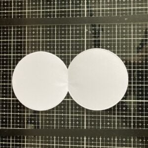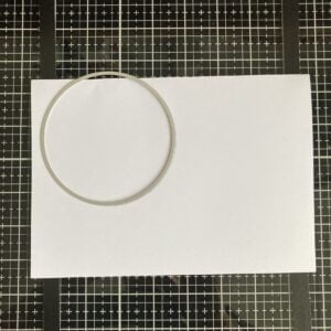 For the card base, I used a circle die slightly smaller than the flower shape, so that the base is hidden under the beautiful flower shape. Using this die cut, I cut the card base out of white cardstock, creating a perfectly rounded shape. To make sure you have a base that you can flip open, first fold the paper in half. You place the circle punch just over that fold, so that fold is preserved. See the photo below.