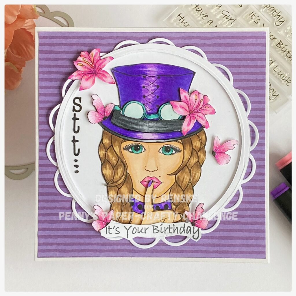 It’s time for a new challenge at Penny’s Paper-Crafty challenge blog. Our theme is as always, “Anything goes using paper”. For this challenge, I made this Sttt…. it’s your birthday card.